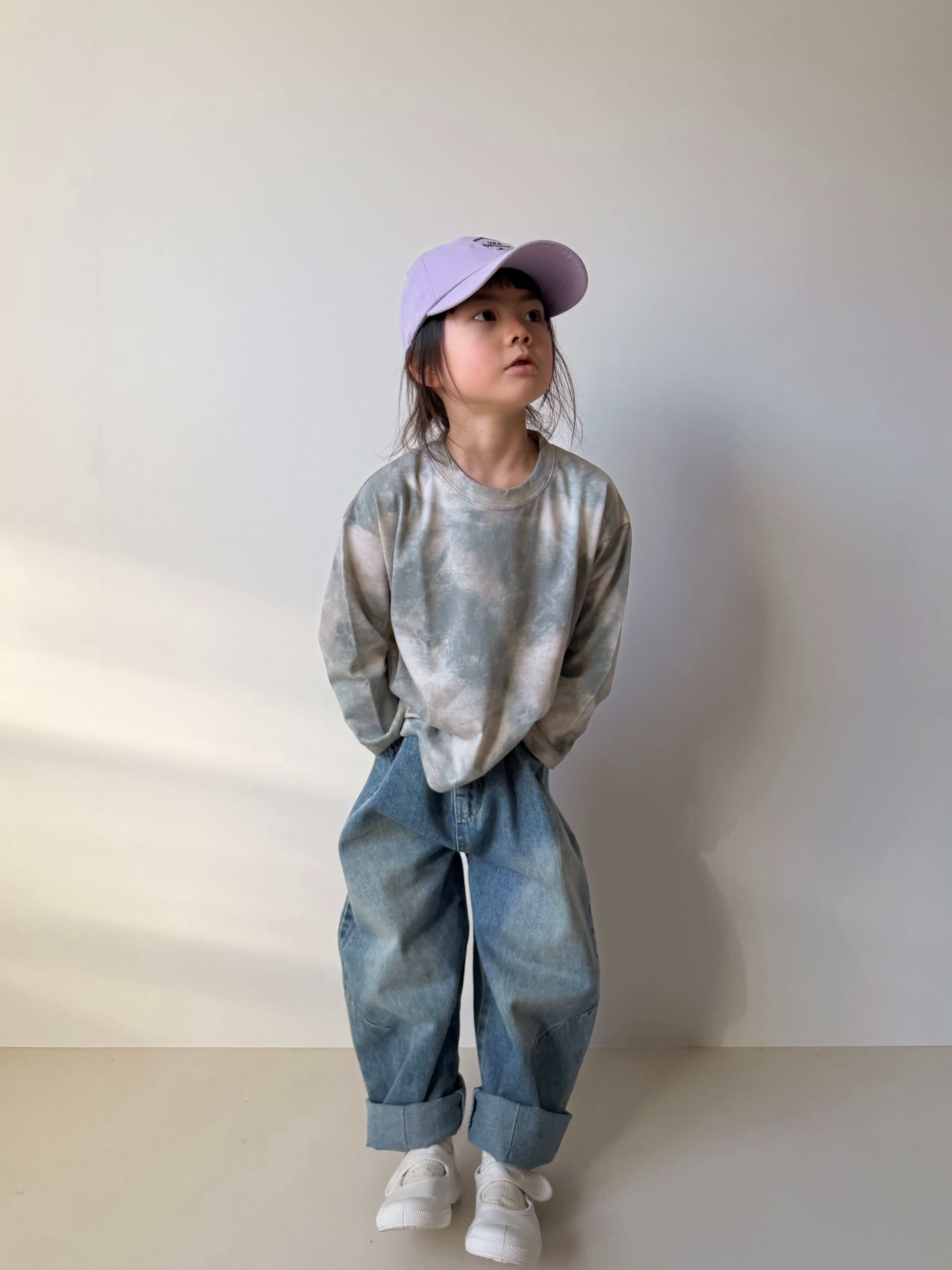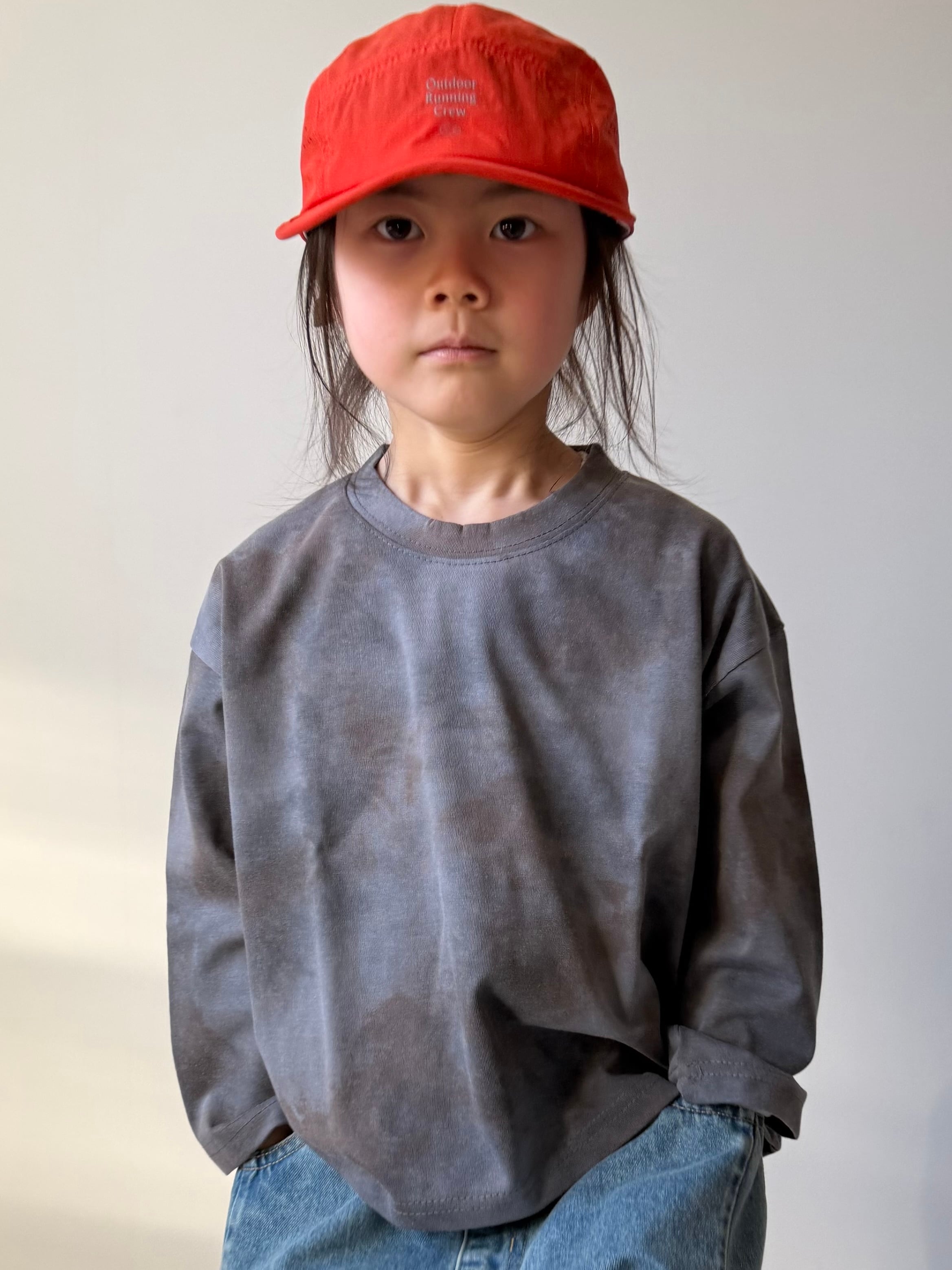 着画モデルは114cmで110を着用しています。